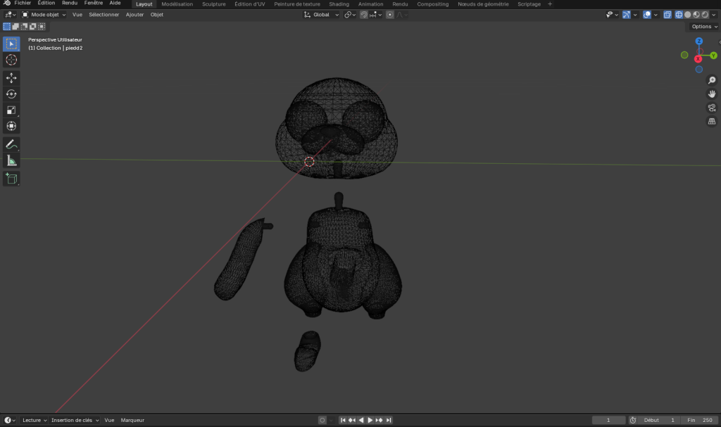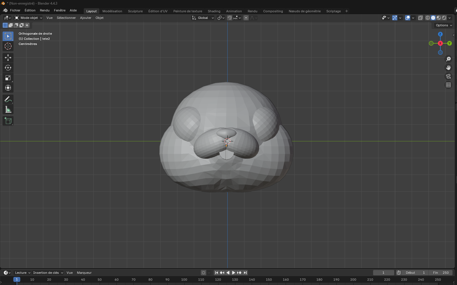 J’ai modélisé la tête au plus près du modèle de référence et j’ai rajouté les vides à l’intérieur du modèle pour l’articulation.