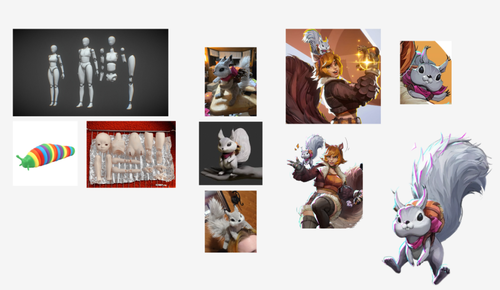 J’ai trouvé des images de référence en 360 du personnage original et réfléchis à des manières de l’articuler en gardant son look « cartoony ».